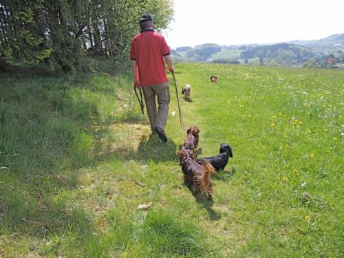 Ganz vorne Angus, dann Jasper, William (bei Frank an der Leine, upps), Emily und Frodo