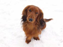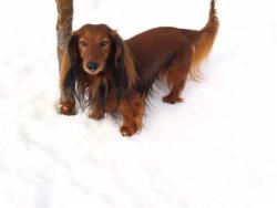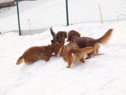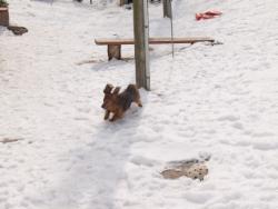 Enrico rennt durch den Schnee ... und Pavati macht eine Kuschel-Pause unter Elkes Jacke.