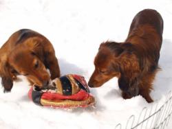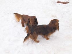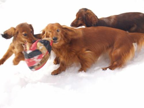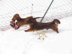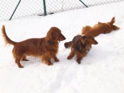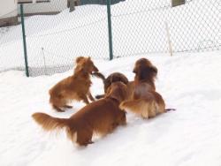 Romeo, Frauke und ich toben im Schnee. - Und so sehe ich aus, wenn ich mal Pause mache.