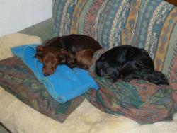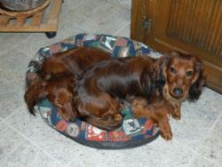 Nun, Papa hat sich mit Emily auf die Couch gelegt und schläft. Ich gehe brav zu Opa in mein Körbchen. ... aber die Ferienwohnung hatte auch noch ein großes Körbchen mit Decken. Das haben wir abwechselnd auch genutzt. Besonders wenn dort die Nachmittagssonne ihre Strahlen durch Fenster und Türe sandte. Wir hatten auch Begrüßungs-Leckerlis in einem Napf, als wir angekommen sind. Unsere Menschen fanden Schokoladenherzen neben ihrem Bett. Das hat uns allen sehr gefallen!!