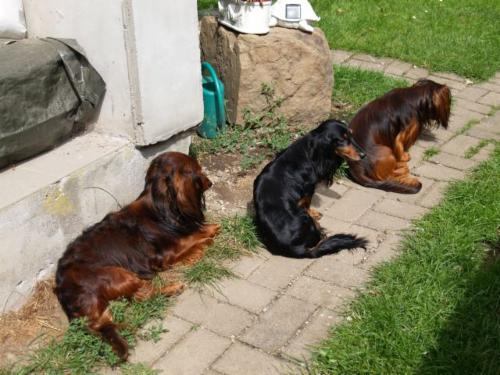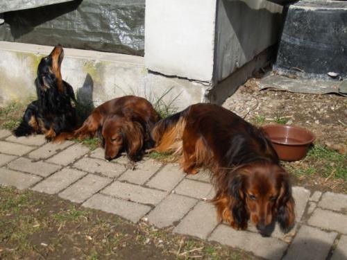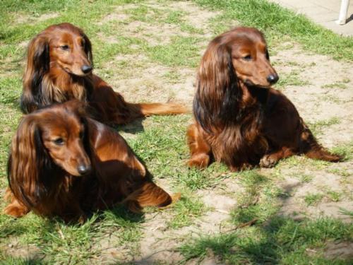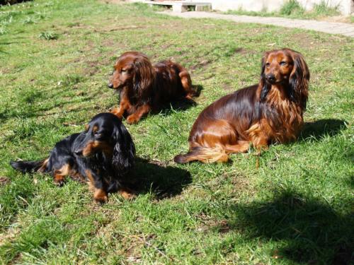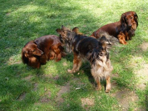 Die Dackel-Jungs! - William (vorne), Angus und rechts Papa Frodo (21. April 2011)
