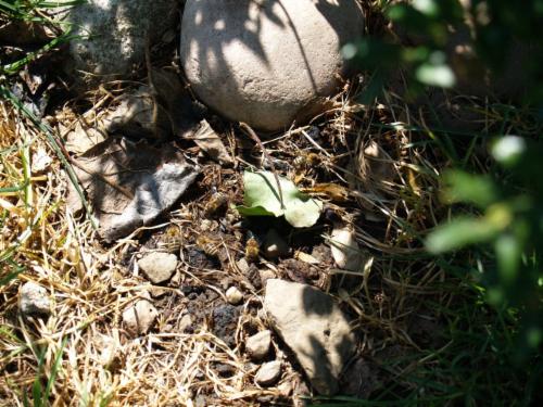 Ein schöner Platz auf dem Rasen. Umringt von Frauenmantelblättchen. (11.8.2011)