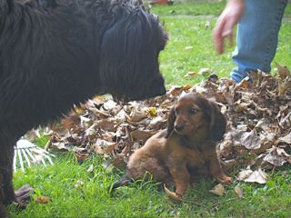 Hallo Rex! Wollen wir den Laubhaufen durcheinander bringen?